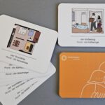 Gemeinsam mit Haupt- und Ehrenamtlichen aus dem Deutsch-Café und Wohnprojekt Augsburg wurden dafür relevante Begriffe und Themen identifiziert und von der Augsburger Illustratorin Lisa Klimesch illustriert. Entstanden sind so u.a. 51 Bild-Vokabelkarten, die letzte Woche zusammen mit einer bunten Materialsammlung an unterschiedlichen Textbeispielen, Infoblättern und Übungsmaterialien im Deutsch-Café von Tür an Tür vorgestellt wurden.